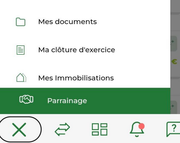 Dans votre espace, lorsque vous êtes connecté à l'application, accédez à "Parrainage" dans la marge à gauche.